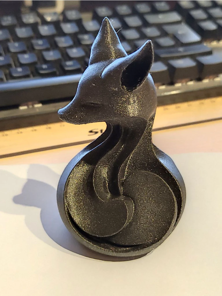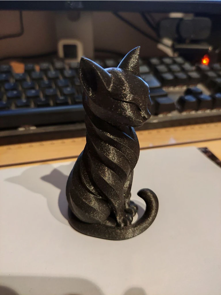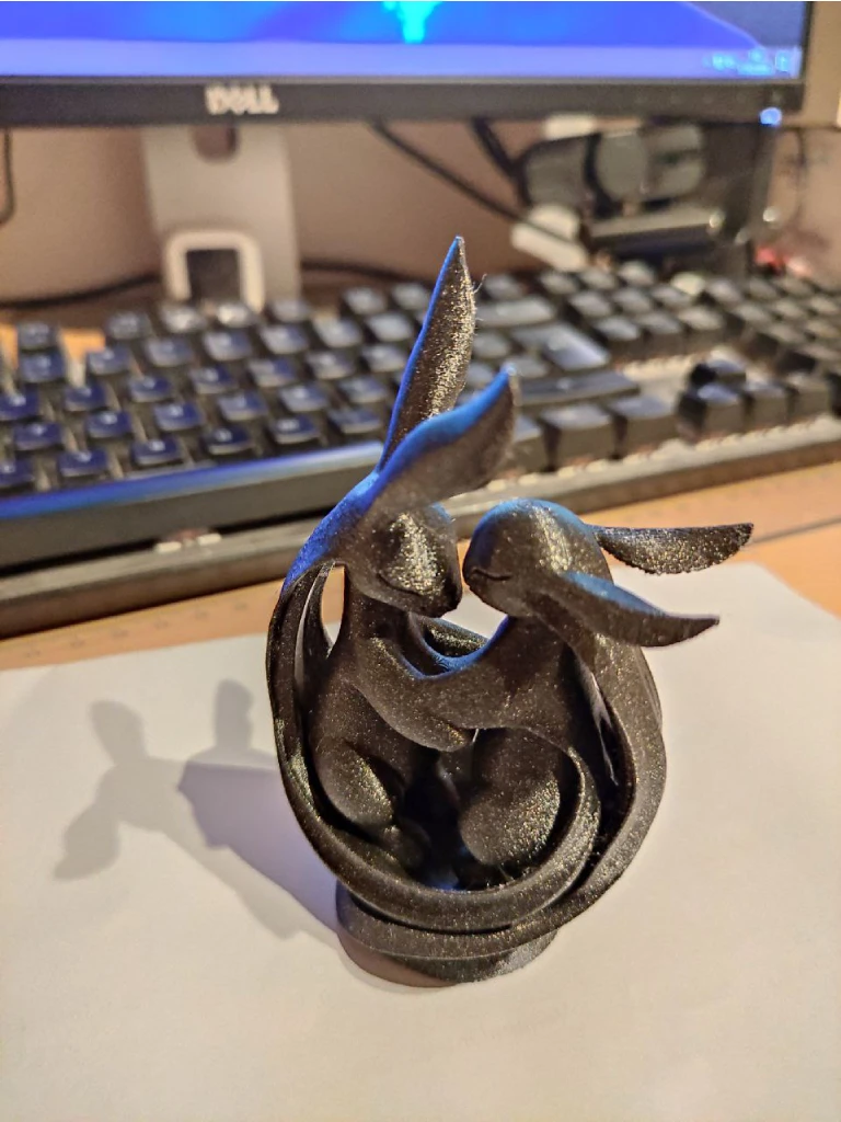 Quizas en vez de imprimir en negro brilli brilli, tenia que haber usado otro color mas clarito donde se vean mejor los detalles, pero este era el filamento que queria gastar.